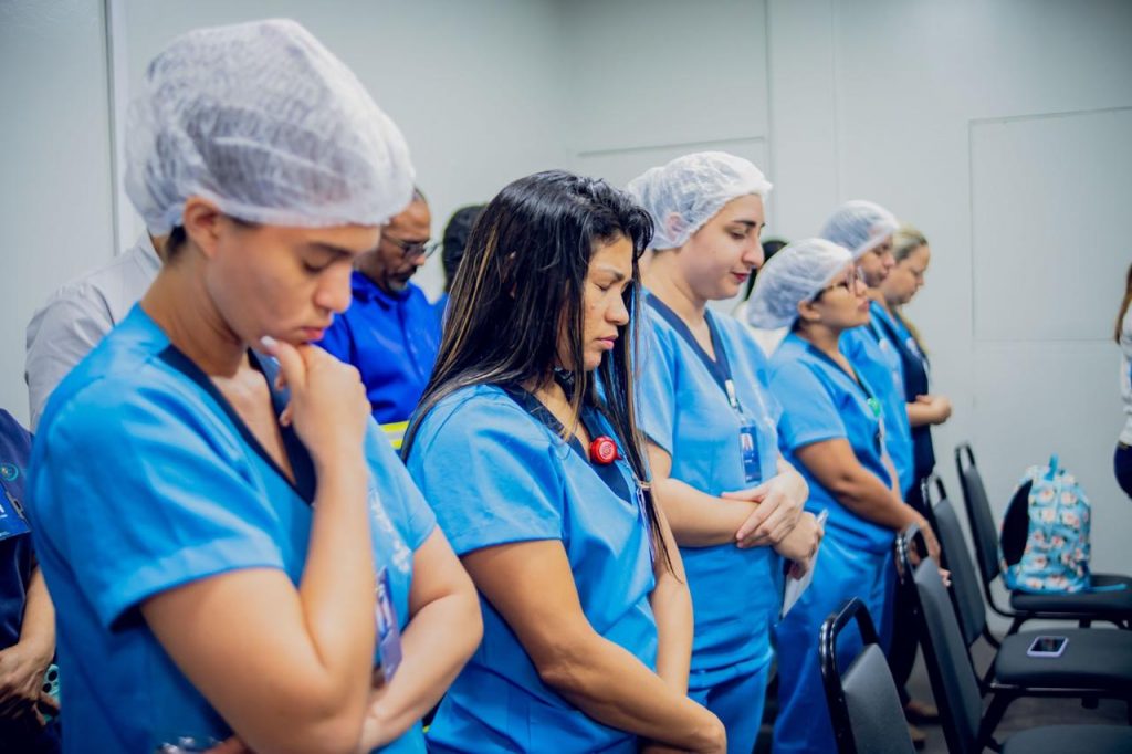 Na sequência, cânticos de louvor e orações intercessoras mudaram a atmosfera do ambiente. O barulho cotidiano deu lugar ao silêncio atento. Para o capelão hospitalar Vanderson Macedo, aquele momento refletia um movimento que vinha sendo construído ao longo de toda a campanha: maior abertura emocional e disposição dos colaboradores para cuidar não apenas das questões físicas, mas também da dimensão espiritual da vida.